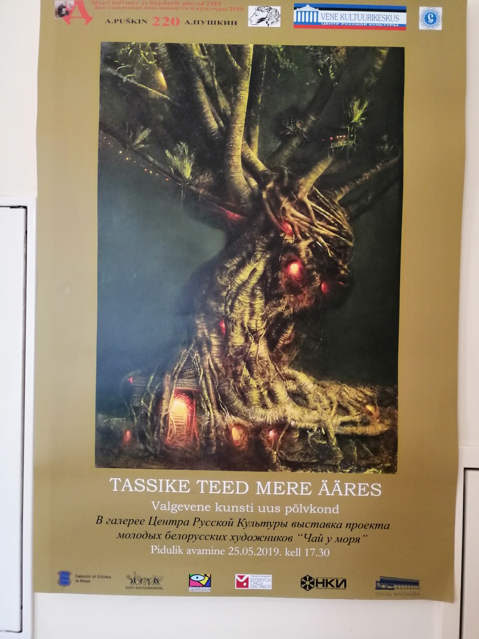 В период с 15.05. по 7.06.2019 года в Центре русской культуры проходили Дни славянской письменности и культуры. 25 мая проводился День белорусской культуры, в мероприятиях которого также участвовали члены Белорусского Центра учёбы и развития EVA-Studiorum. В рамках Дня белорусской культуры состоялось торжественное открытие выставки молодых белорусских художников «Чай у моря». На выставке были представлены работы Алеси Скоробогатой, Александра Доманова, Юлии Мацуро, Глеба Отчика, Ивана Семилетова и Дмитрия Оганова. «Чай у моря» — это это выставочный художественный проект, реализованный совместно Международной лабораторией искусств (Таллинн, Эстония) и Республиканской художественной галереей (Минск, Беларусь) при поддержке Посольства Республики Беларусь в Эстонии.
